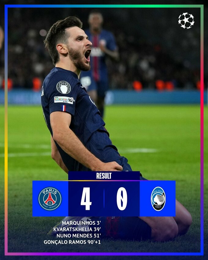 17.09. 22:00 ПСЖ (Франция) – Аталанта (Италия) – 4:0