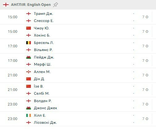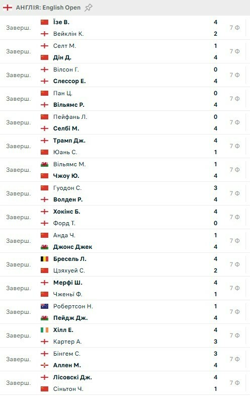 Пары 1/8 финала 2025 English Open (18 сентября):