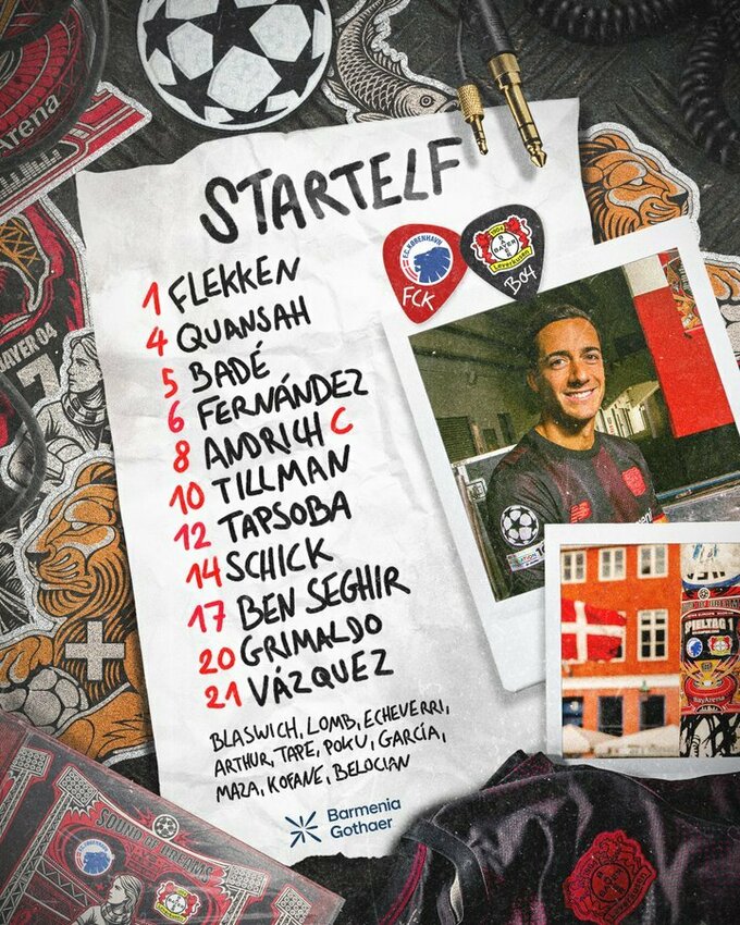 Стартовые составы на матч «Копенгаген» – «Байер»: