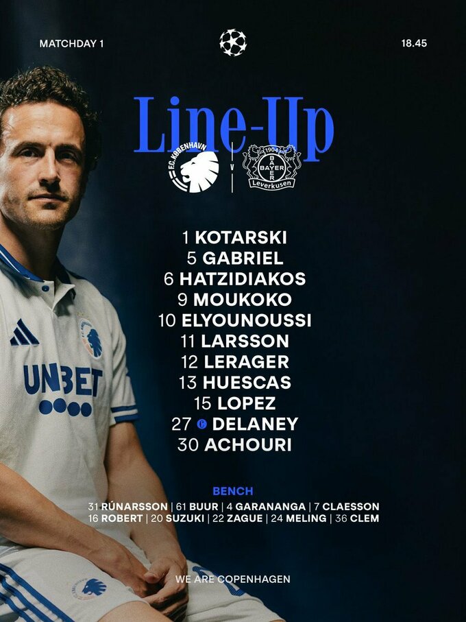 Обнародованы стартовые составы на матч Копенгаген – Байер