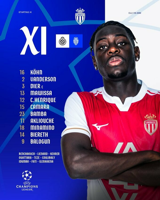 Обнародованы стартовые составы на матч Брюгге – Монако