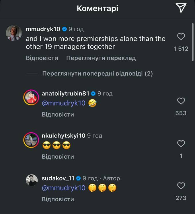 «and I won more premierships alone than the other 19 managers together», – написал Мудрик.