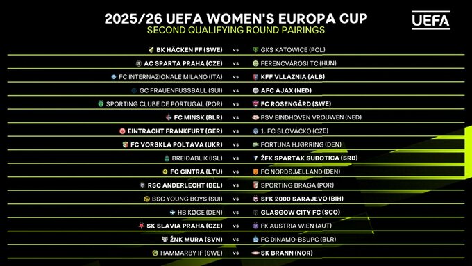 19 сентября в 16:00 состоялась жеребьевка 2-го квалификационного раунда (Q2) женского Кубка Европы УЕФА, второго по силе евротурнира.