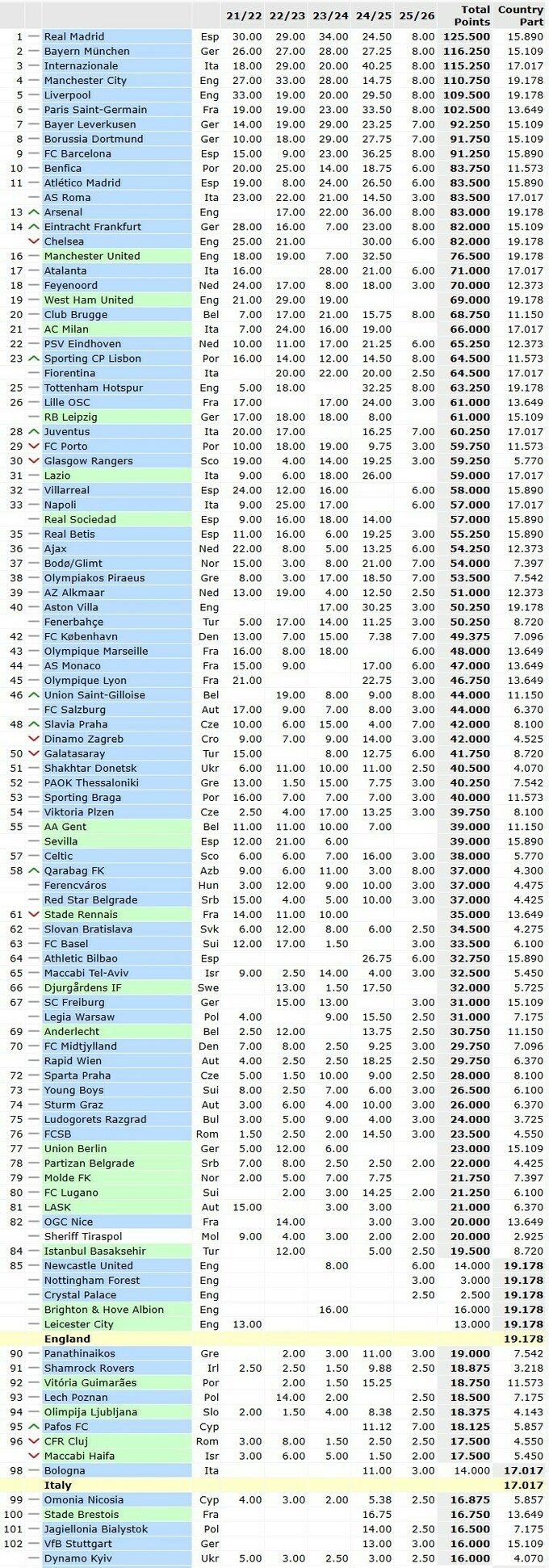 Клубный рейтинг УЕФА