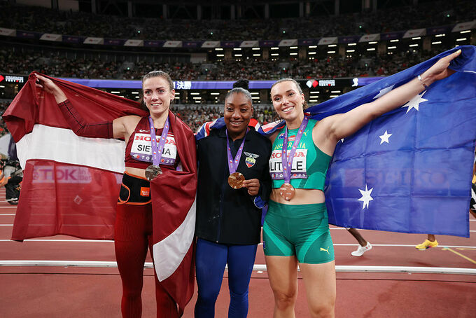 Между тем сенсации в метании копья продолжились и в финале. Чемпионкой с показанным во второй попытке результатом 65,12 метра, который является новым рекордом Эквадора, стала 24-летняя Хулейси Ангуло, которая до сих пор каких-либо существенных достижений не имела. Так же неожиданное серебро Анете Сетиной, которая принесла Латвии всего третью в истории и первую за последние десять лет медаль чемпионатов мира по легкой атлетике. До пятой попытки Анете находилась в тени, но затем метнула копье на 63,35 и поднялась на третье место, а в заключительной попытке превзошла этот результат (64,64) и стала второй.