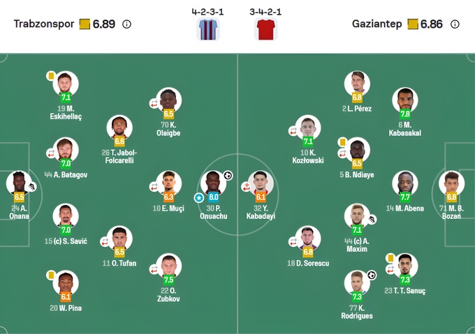 После ничьей со счетом 1:1 статистический портал SofaScore опубликовал оценки футболистов. Самый высокий балл получил нападающий «Трабзонспора» Пол Онуачу, который своим голом спас команду от поражения – 8.0.