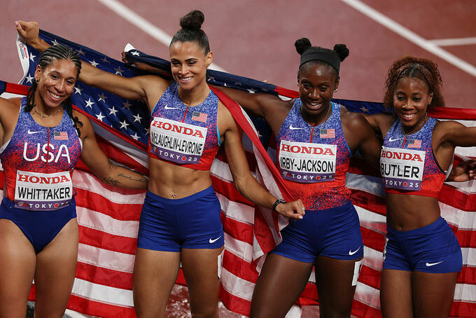 Очень убедительно американки выиграли и эстафету 4х100 м. Мелисса Джефферсон-Вуден завоевала в Токио свое третье после побед в беге на 100 и 200 м золото и стала главной мультимедалисткой этого чемпионата мира. Третье золото первенств планеты завоевала финишерка американок Ша'Карри Ричардсон.