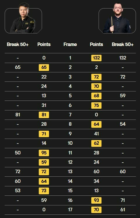 Чжоу Юэлун (Китай) – Марк Аллен (Сев. Ирландия) – 8:9