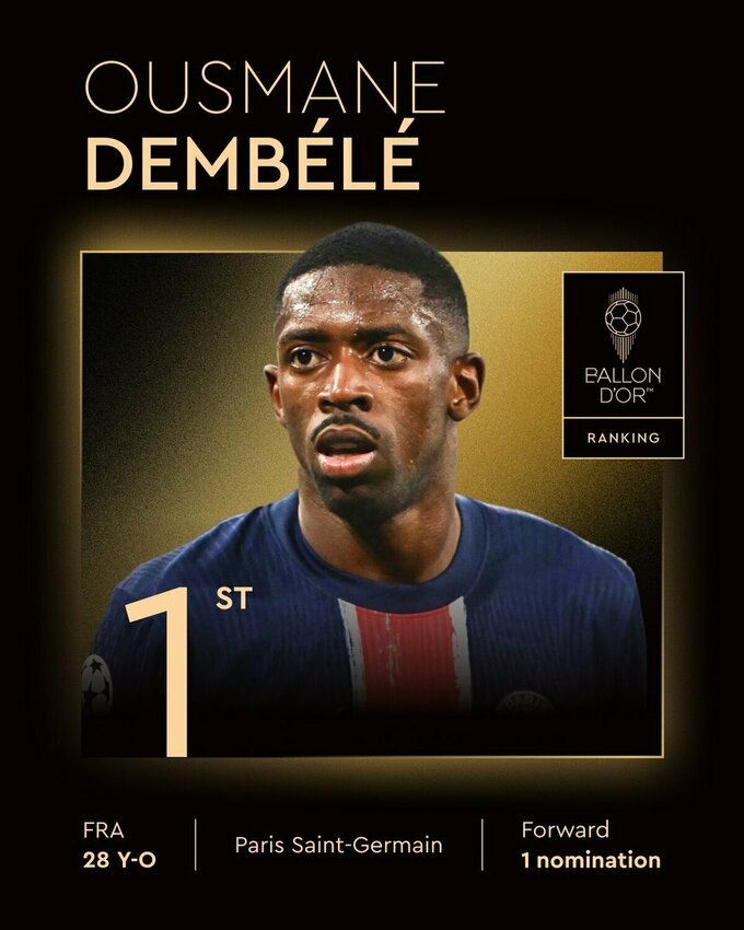 Дембеле хороший игрок, но вообще не воспринимаю его лучшим в мире. Да, за этот сезон он почти всё выиграл, но в этом списке суммарные достижения Салаха, Мбаппе, Холланда, Левандовски, и др. выглядят покруче и у них нет ЗМ. И даже в ПСЖ я не думал, что Дембеле прямо главная звезда. Хвича, Дуэ, Барколя тоже были очень хороши, да и Витинья, Руис, Хакими добавляли команде мощи. В общем, Дембеле для меня примерно как Родри - по трофеям за сезон может и заслужил ЗМ, но не лучший игрок в мире и шансов на второй такой трофей не вижу.