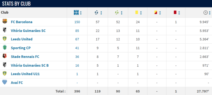 150 матчей за Барселону. Статистика Рафиньи в составе каталонцев