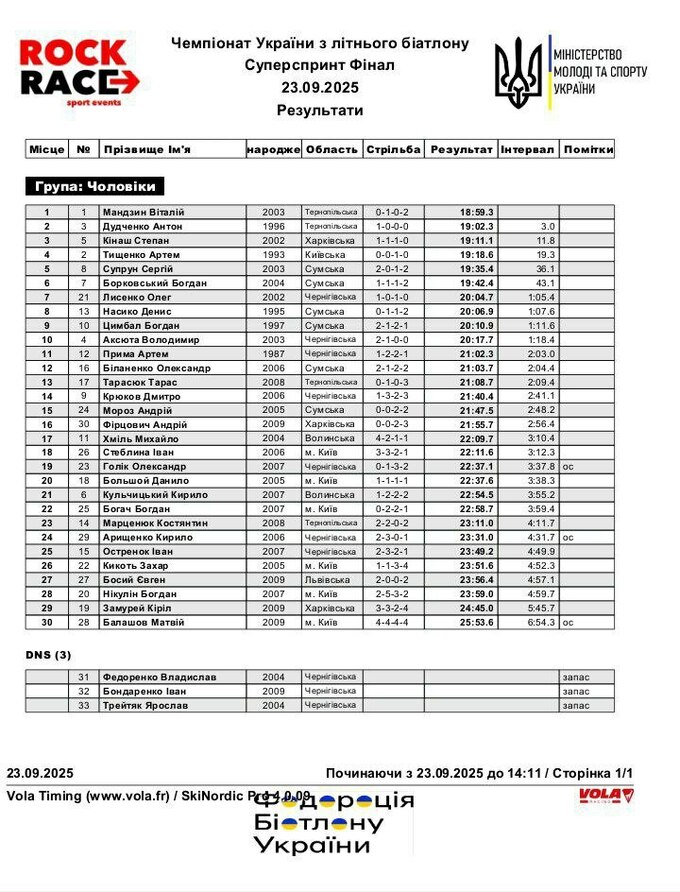 23 сентября после женского финала на чемпионате Украины 2025 по летнему биатлону состоялся мужской старт в формате суперспринта.