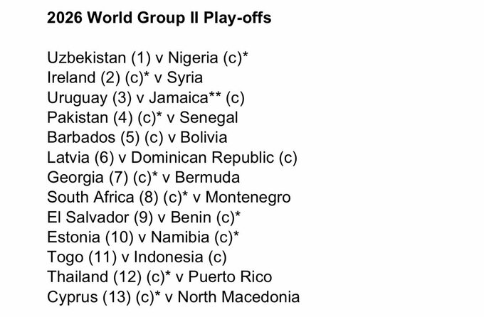 Сборные, которые проиграют в плей-офф Мировой группы I 2026, и победители плей-офф Мировой группы II 2026 выступят в матчах Мировой группы II в сентябре.