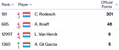 Теннисисты Люксембурга в одиночном рейтинге ATP