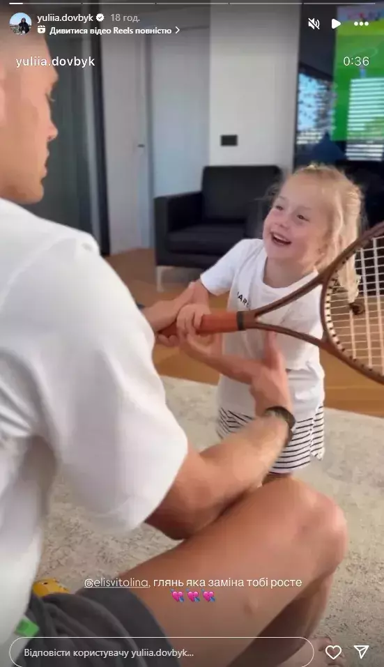 На сториз изображен Артем вместе со своей дочерью Кирой, которая осваивает теннисную ракетку.
