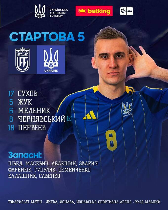 Обнародована стартовая пятерка сборной Украины на матч с Литвой