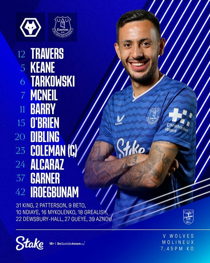 Стартовые составы на матч «Вулверхэмптон» – «Эвертон»: