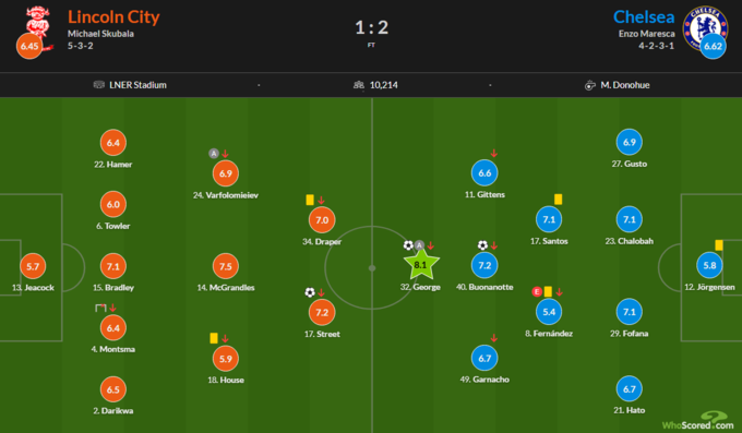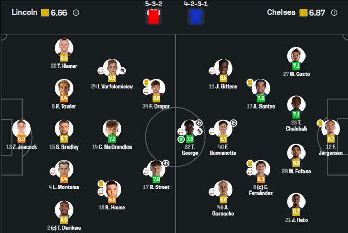 Украинский полузащитник «Линкольн Сити» Иван Варфоломеев провел на поле 71 минут, отличился одной голевой передачей. Статистические порталы SofaScore и WhoScored оценили игру украинца в 6.9 и 6.9 баллов соответственно.