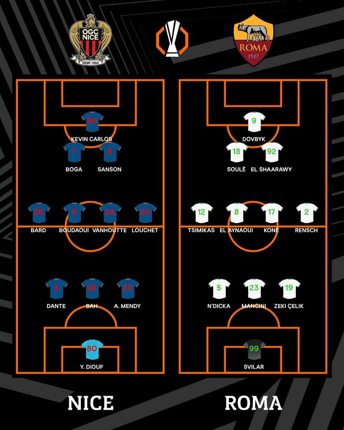 Известны стартовые составы на матч Ницца – Рома. Где Довбик?
