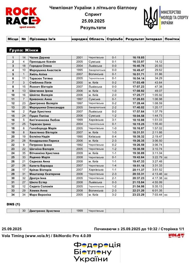 ЧУ-2025 по летнему биатлону. Чалык выиграла спринт, Дмитренко не стартовала