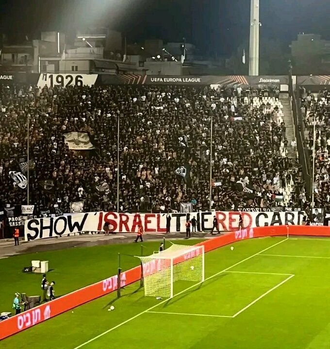 Накануне во время матча Лиги Европы ПАОК – Маккаби Тель-Авив (0:0) болельщики греческого клуба выкрикивали антиизраильские лозунги и развернули баннер с призывом «Покажите Израилю красную карточку».