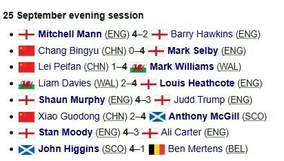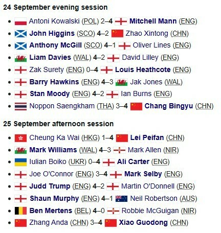 4-кратный чемпион мира Марк Селби за день выиграл два матча: победил Джо О'Коннора (4:3) и китайца Чан Бинью (4:0).