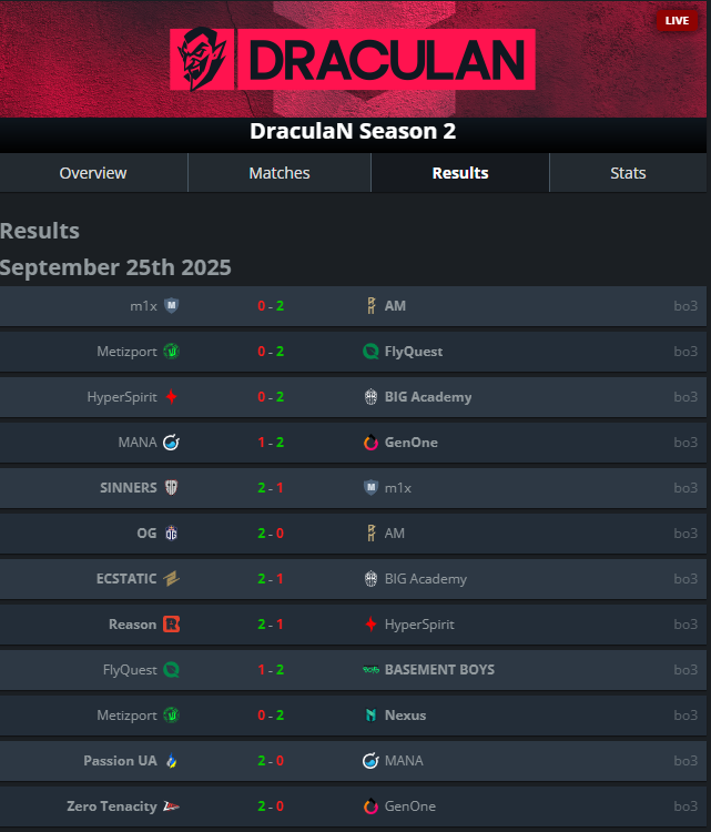 Metizport и еще три команды вылетели с DraculaN Season 2 в первый день