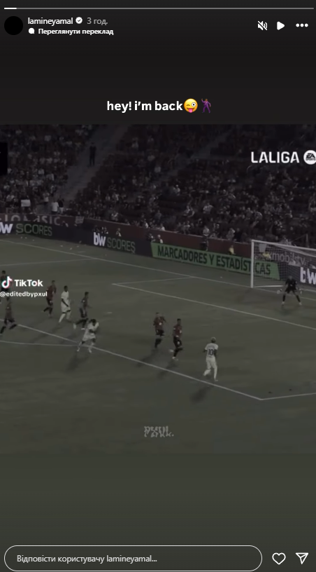 «I'm back». Ямаль анонсировал свое возвращение после травмы