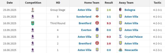 «Астон Вилла» после семи сыгранных матчей одержала первую победу в нынешнем сезоне.