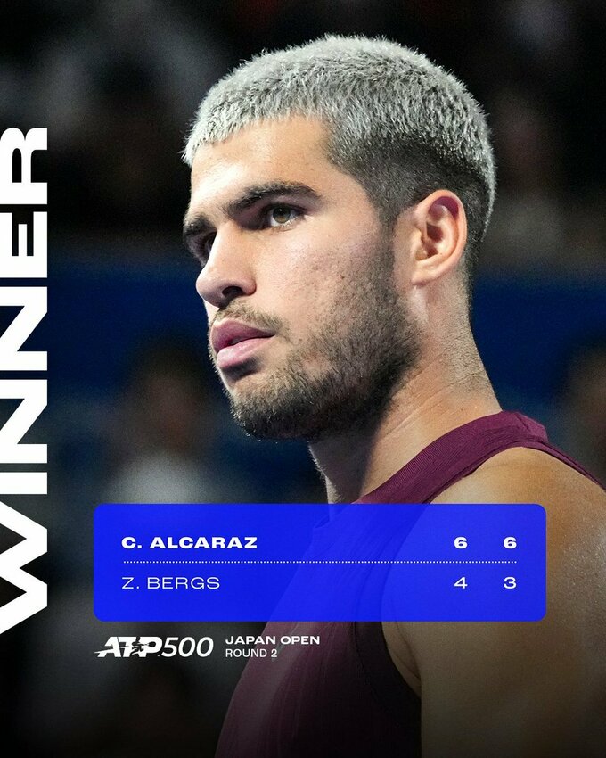 Лидер мирового рейтинга ATP Карлос Алькарас (Испания) пробился в четвертьфинал хардового турнира ATP 500 в Токио, Япония.