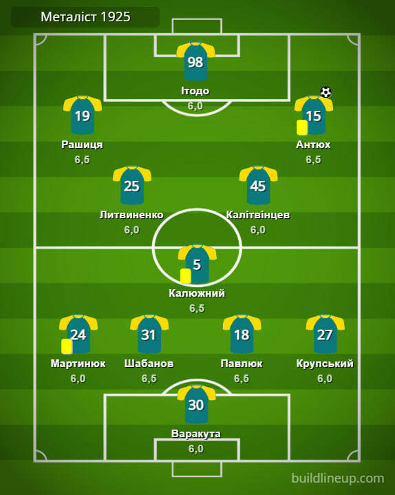 «Металлист 1925»: Варакута – Мартинюк, Шабанов, Павлюк, Крупский – Литвиненко (Чурко, 90), Калюжный, Калитвинцев – Рашица, Итодо (Мба, 75), Антюх (Когут, 64).