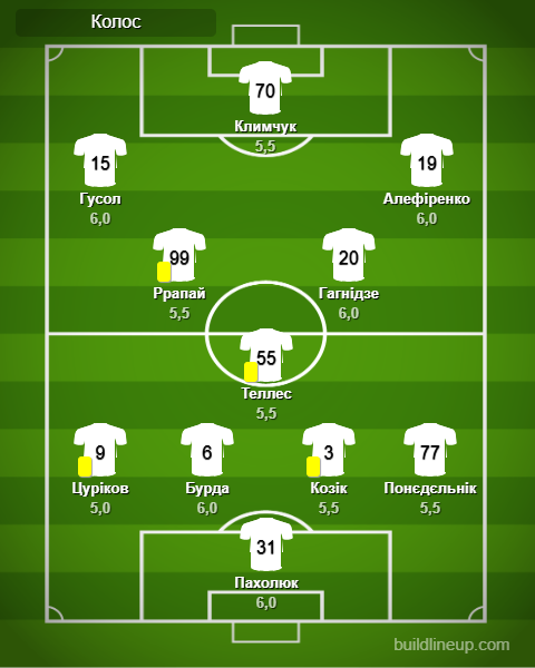 «Колос»: Пахолюк – Цуриков, Бурда, Козик, Понедельник (Салабай, 88) – Ррапай (Красничи И., 76), Теллес, Гагнидзе – Гусол (Кане, 64), Климчук (Кане, 76), Алефиренко (Третьяков, 64)