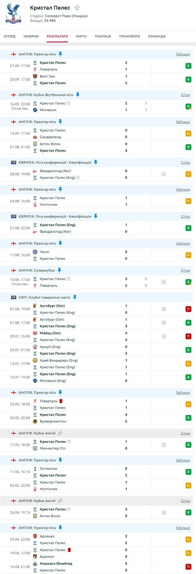 Беспроигрышная серия Кристал Пэлас во всех турнирах (18)
