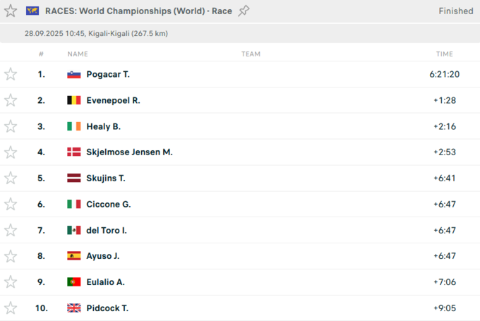 - 1. Тадей Погачар (Словения) – 6:21:20