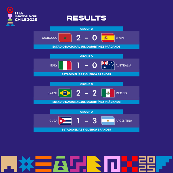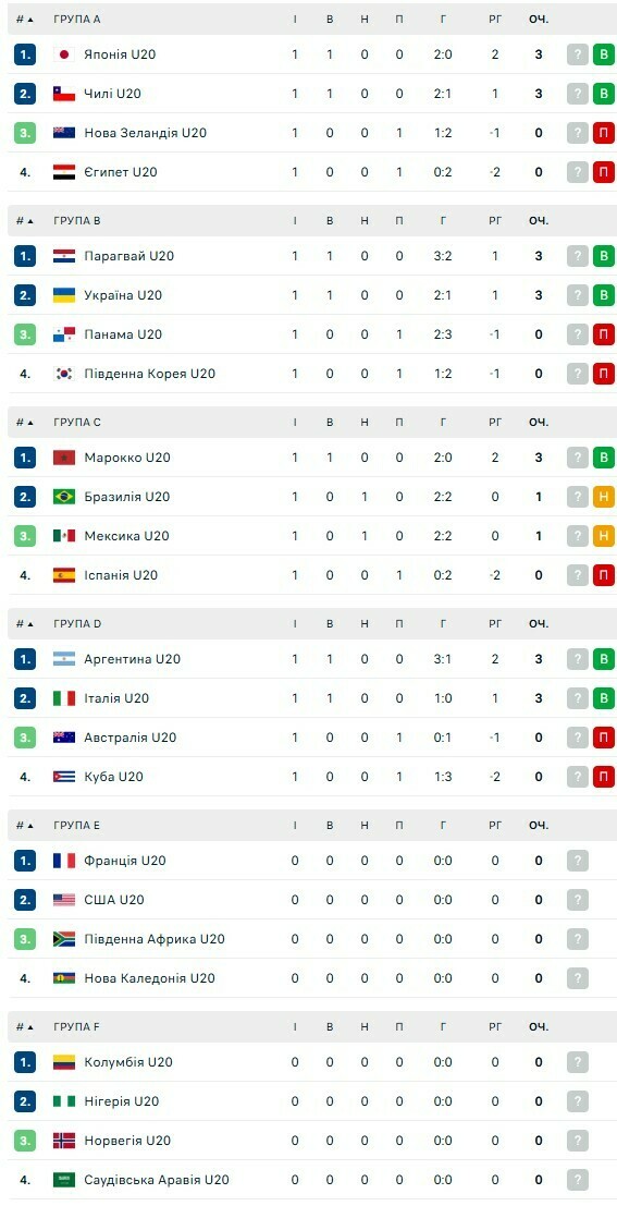 Таблицы ЧМ U-20. Фиаско Испании, ничья Бразилии, Аргентина взяла три очка