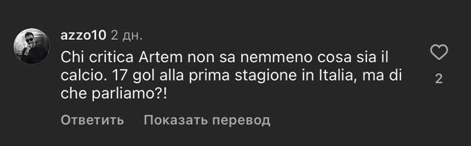 Azzo: Кто критикует Артема, даже не знает, что такое футбол. 17 голов в первом сезоне Серии А вам ни о чем не говорят!