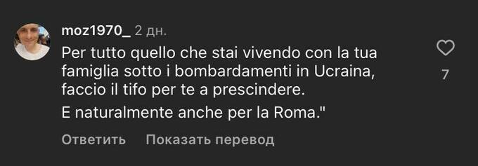 Carmelo Nigrtelli: Этот гол для всех живущих в украинских городах под обстрелами. Я волнуюсь за вас и болею за Рому!