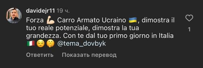 DavideBruno: Украинский танк. Покажи свой реальный потенциал, покажи, на что ты способен. Слежу за тобой с первого дня в Италии. Вперед, Артем!