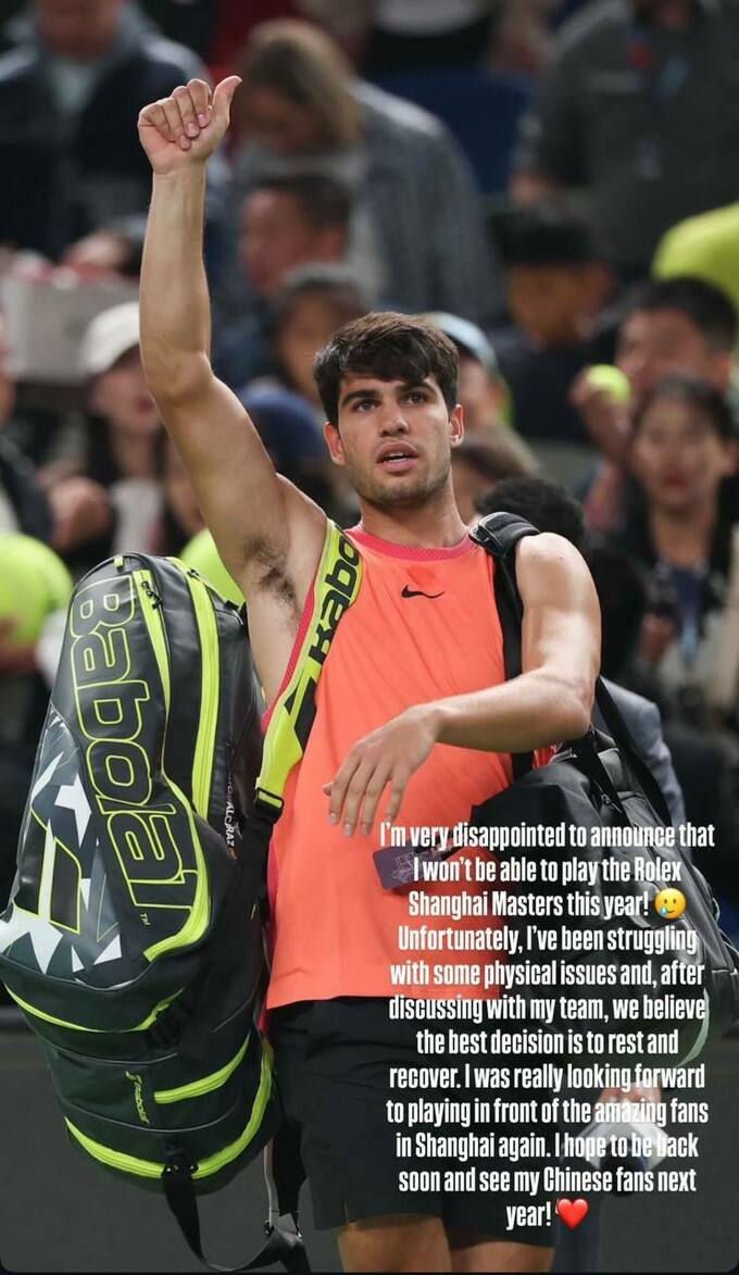 В первом матче на соревнованиях в Токио Карлос получил травму лодыжки. Он сумел доиграть тот поединок, а затем и выиграть турнир, но проблемы никуда не делись. Врачи посоветовали Алькарасу не перенапрягаться.