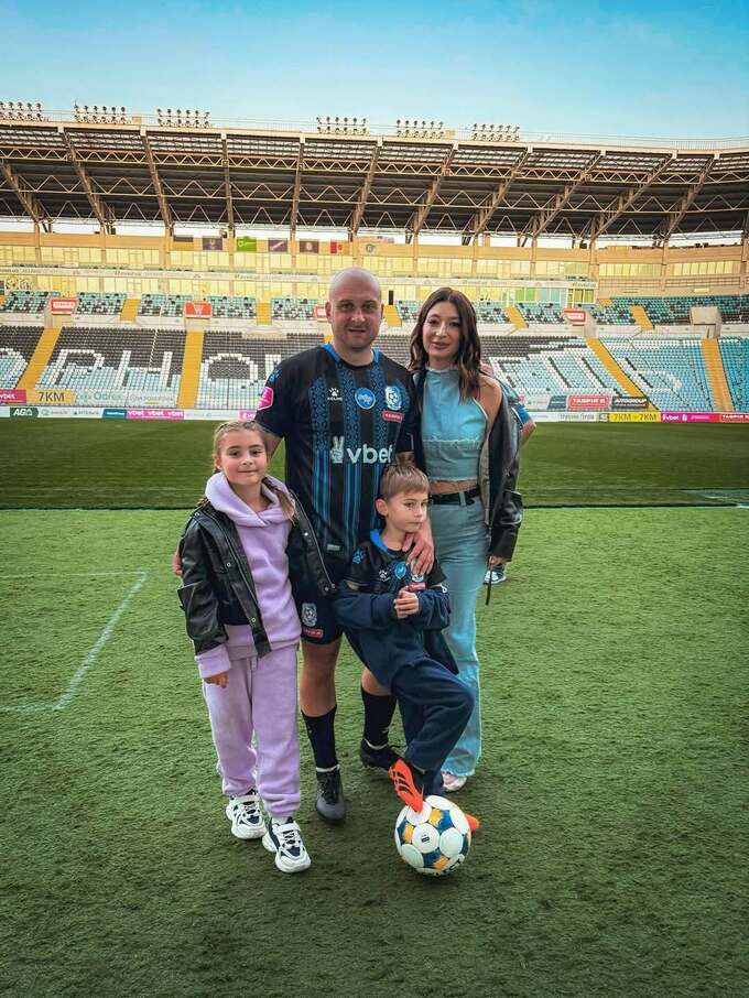 На фото защитник «Черноморца» в форме клуба рядом с женой и детьми, их улыбки излучают гармонию.