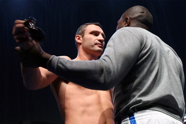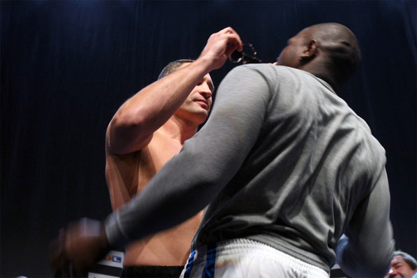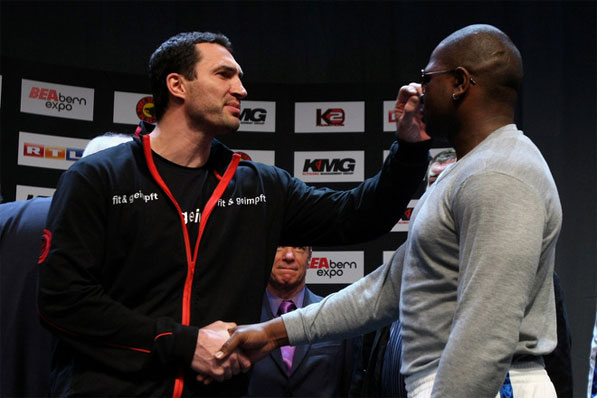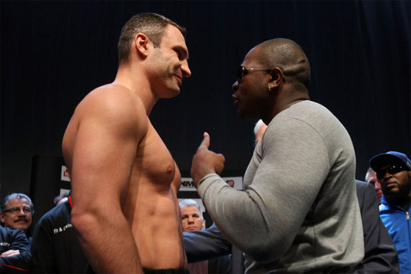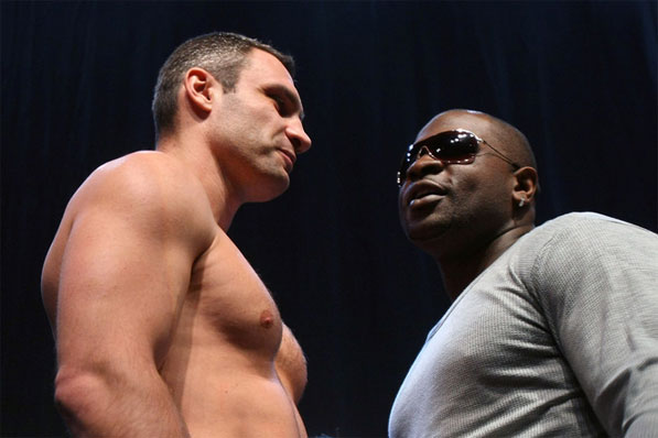 Кевин Джонсон очень любит черные очки, без них он никуда. Но Виталий Кличко все же сумел посмотреть американцу в глаза и до боя (в ринг Кевин, скорее всего, выйдет без очков).