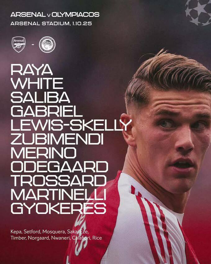 Артета оставил в резерве Эзе, Сака и Райса на матч ЛЧ против Олимпиакоса