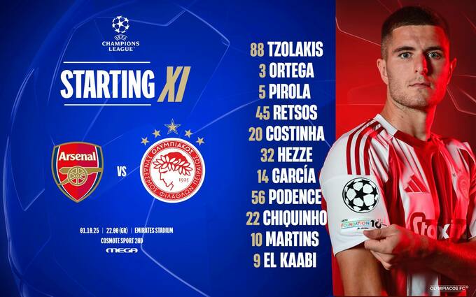 Стартовые составы на матч Арсенал – Олимпиакос