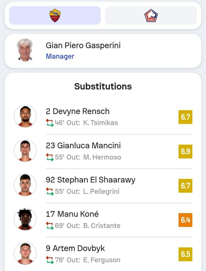 На 6-й минуте встречи счет открыл исландец Гакон Гаральдссон – этот забитый мяч в итоге оказался единственным в противостоянии. На 82-й минуте в ворота «Лилля» был назначен пенальти, который игроки «Ромы» не реализовали, несмотря на три попытки.