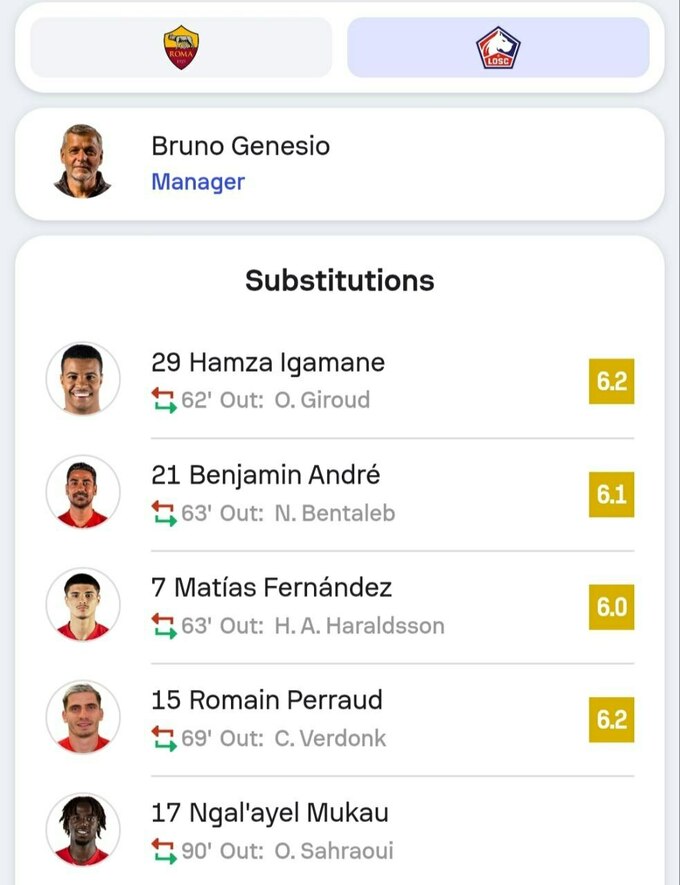 Статистический портал Sofascore оценил игру украинского футболиста в 6,5 балла. Лучшим игроком этого поединка стал турецкий вратарь «Лилля» Берке Озер, который три раза отбил один и тот же пенальти (9,1 балла).