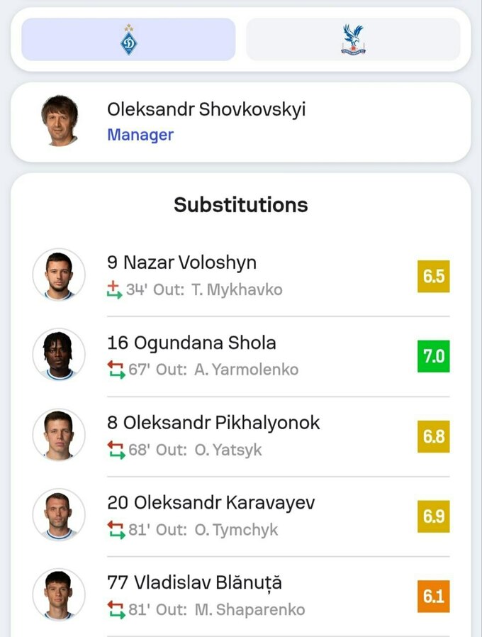 В четверг, 2 октября, состоялся матч первого тура Лиги конференций, в котором встретились киевское «Динамо» и английский «Кристал Пэлас». Подопечные Александра Шовковского потерпели поражение со счетом 0:2.