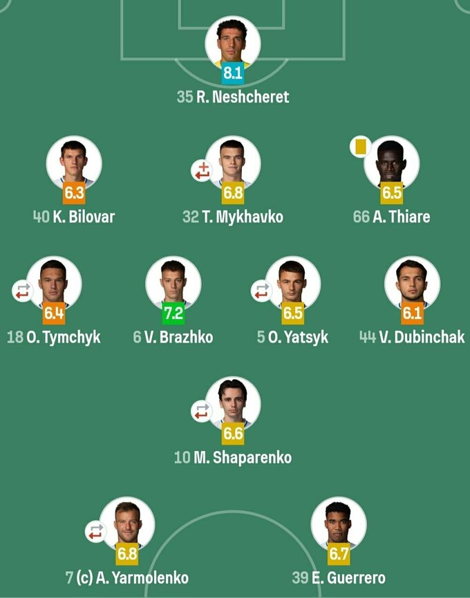 Статистический портал Sofascore опубликовал оценки игроков после завершения этого противостояния. Лучшим игроков в составе «бело-синих» стал голкипер Руслан Нещерет (8,1). Самую высокую оценку среди игроков обеих команд получил Муньос (8,7).