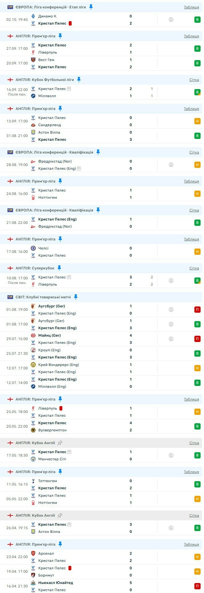 Беспроигрышная серия «Кристал Пэлас» во всех турнирах (19)