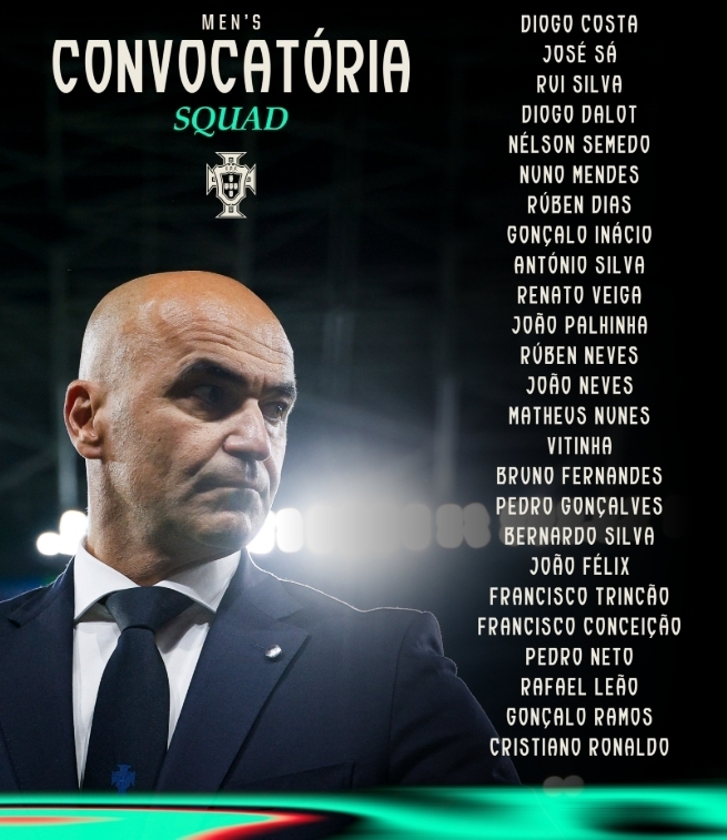 Тренер сборной Португалии Роберто Мартинес объявил заявку на матчи отбора ЧМ-2026 против Ирландии и Венгрии.