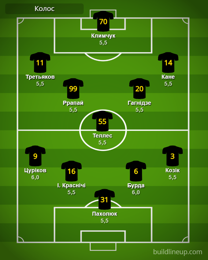 «Колос»: Пахолюк – Цуриков (Рухадзе, 60), И. Красничи, Бурда, Козик (Понедельник, 46) – Ррапай, Теллес, Гагнидзе – Третьяков (А. Красничи, 60), Климчук (Оевуси, 46), Кане (Алефиренко, 46).