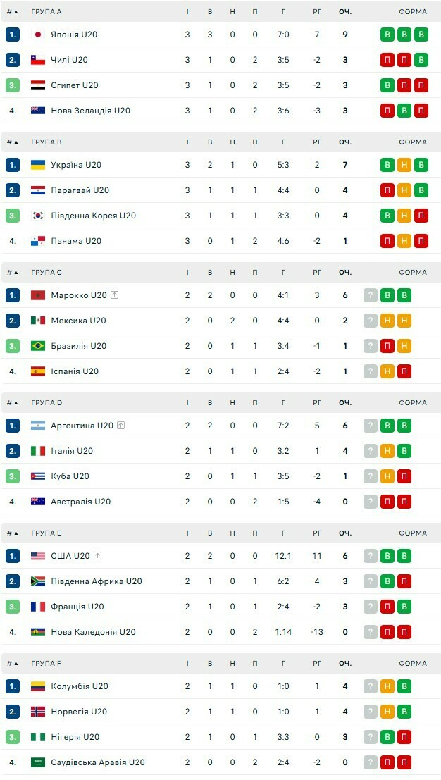Таблицы ЧМ U-20. Сборная Украины вышла в 1/8 финала с первого места группы